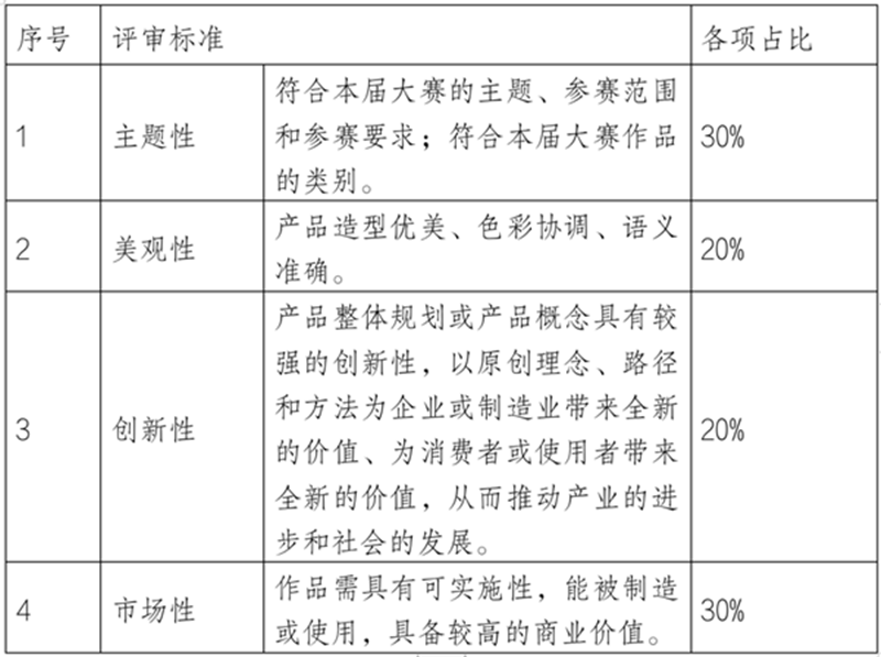 2.终评:从入围作品公示日开始,开启网络投票,直至3月22日终评时间,特等奖和一、二、三等奖作者携带3D或2D源文件(含效果图、三视图、工艺节点图等)及实物样品到指定场地进行路演,再由评审委员会对作者进行现场答辩,最终确定获奖名单。