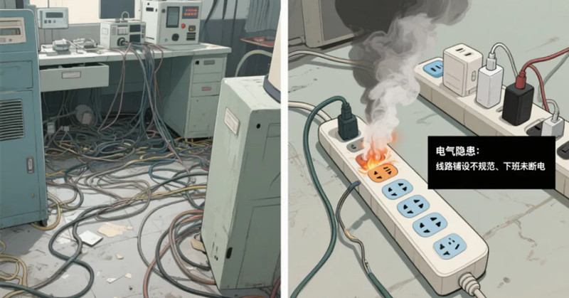 电气问题是引发火灾的 “隐形杀手”,像机台挪位后线路铺设不规范、下班忘记断电、插线板使用不当等情况都暗藏风险,此前就有医疗器械公司因机台未断电且线路铺设不规范而引发火灾的案例。