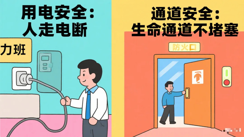 此外,要时刻保持安全出口、疏散通道等生命通道的畅通,不堆放杂物,防火门要保持关闭状态,疏散指示灯要保证常亮。