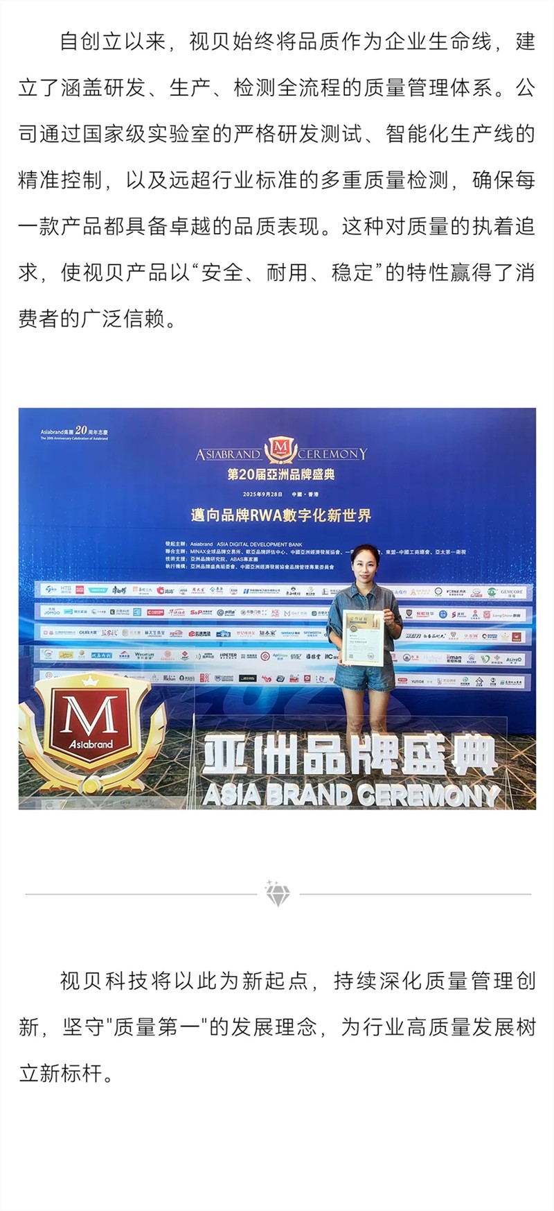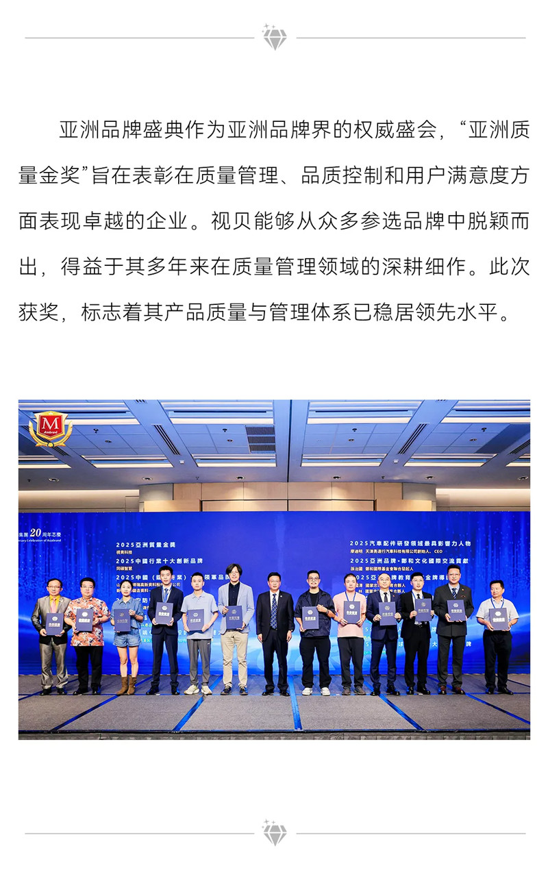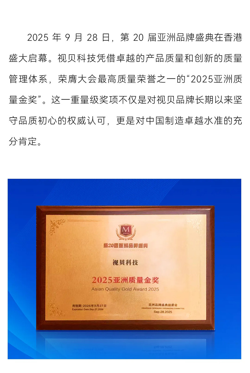 视贝亮相第20届亚洲品牌盛典 斩获“2025亚洲质量金奖”