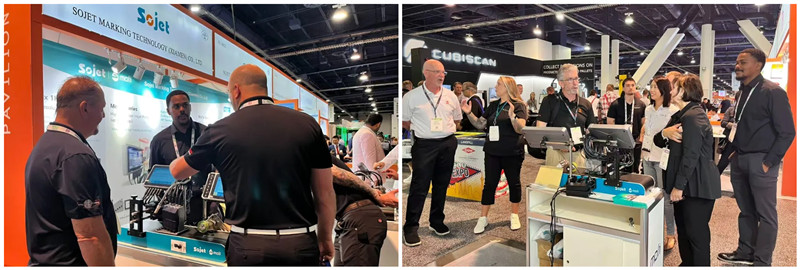 不止昇捷丰展台,整个拉斯维加斯会展中心都洋溢着 “行业盛宴” 的热烈氛围:全球包装、加工及供应链领域企业齐聚,前沿自动化设备琳琅满目。昇捷丰展台前,团队向客户细致讲解喷码机的性能参数与应用场景,同步收获 “设备可提升生产效率” 的积极反馈;客户纷纷驻足加微信、换名片,隔壁展台同行亦前来交流技术。对昇捷丰而言,参展不仅是推广产品,更是深度捕捉海外市场需求、洞察行业前沿趋势,为后续产品优化与方案升级积蓄力量。